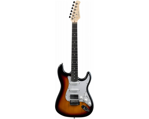 VESTON ST-HSS SB это универсальный инструмент, в корпусе стратокастер с конфигурацией звукоснимателей HSS в цвете санберст с контрастным белым пикгардом и хромированной фурнитурой. Конфигурация HSS позволит играть в разных жанрах, как сольно, так и в качестве аккомпанемента. Комбинируя хамбакер в бридже с двумя синглами в нэке и средней позиции, вы можете получить как чистый звук, так и мощный дисторншн. Сегодня многие музыканты, особенно сессионные, которым нужна вариативность, все чаще выбирают себе инструменты именно с такой конфигурацией. Хромированная крышка на хамбакере отлично сочетается с хромированной фурнитурой и придает гитаре более современный вид.